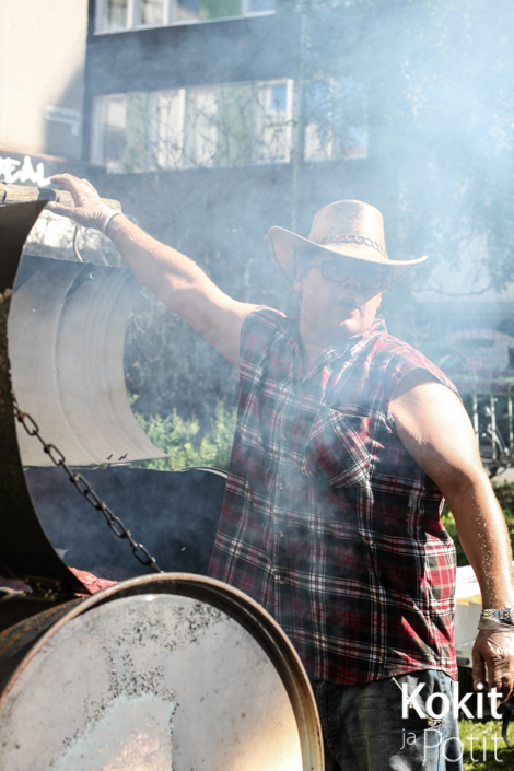 Ookko nää syöny? -ravintola tarjosi porsaan ribsejä ja klassisia juustoburgereita Snellmanin puistossa. Kaverukset olivat värkänneet miehekkäät tynnyrigrillinsä itse ja tyylikkäät asut viimeistelivät ilmeen. Ruoka oli erinomaista ja meininki kiireestä huolimatta rennon letkeää. Kympin annokset sisälsivät tölkin limsaa ja olivat kooltaan niin reiluja, etten ribsien jälkeen jaksanut syödä kierroksellani muuta. Ehkä puolikkaan annoksen olisi saanut puolella hintaa?